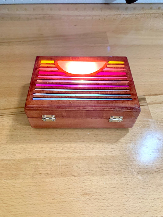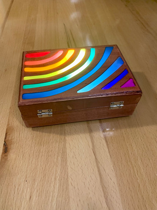 Sunset Vibe Wood & Resin Glow Light Box - Teak Rainbow