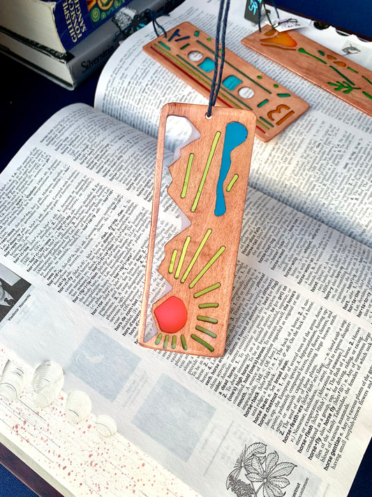 Colorful handmade wood & resin bookmarks, sturdy enough to make it through...