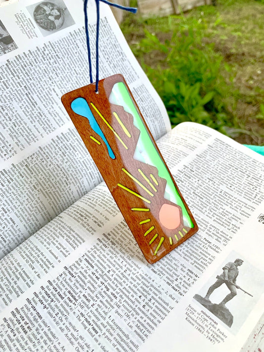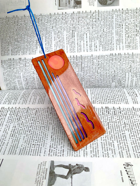 Sunset Vibe Wood & Resin Bookmark - Basswood Blues