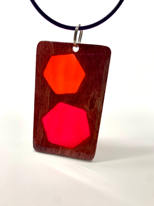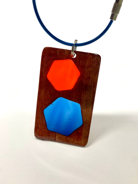 Hexagon Wood & Resin Keychain - Rosewood Sunset