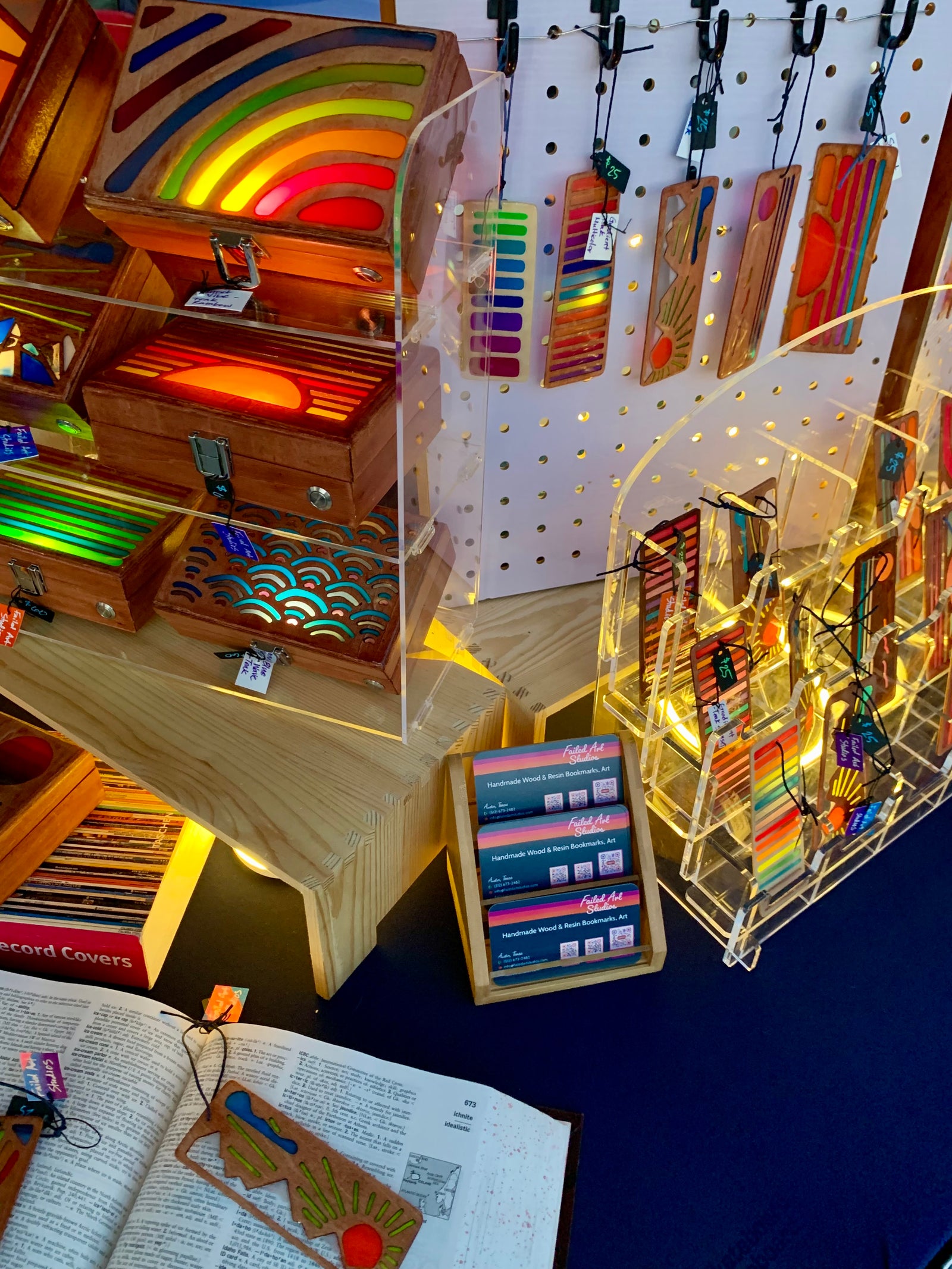 Sunset Vibe Wood & Resin Bookmark - Walnut Rainbow