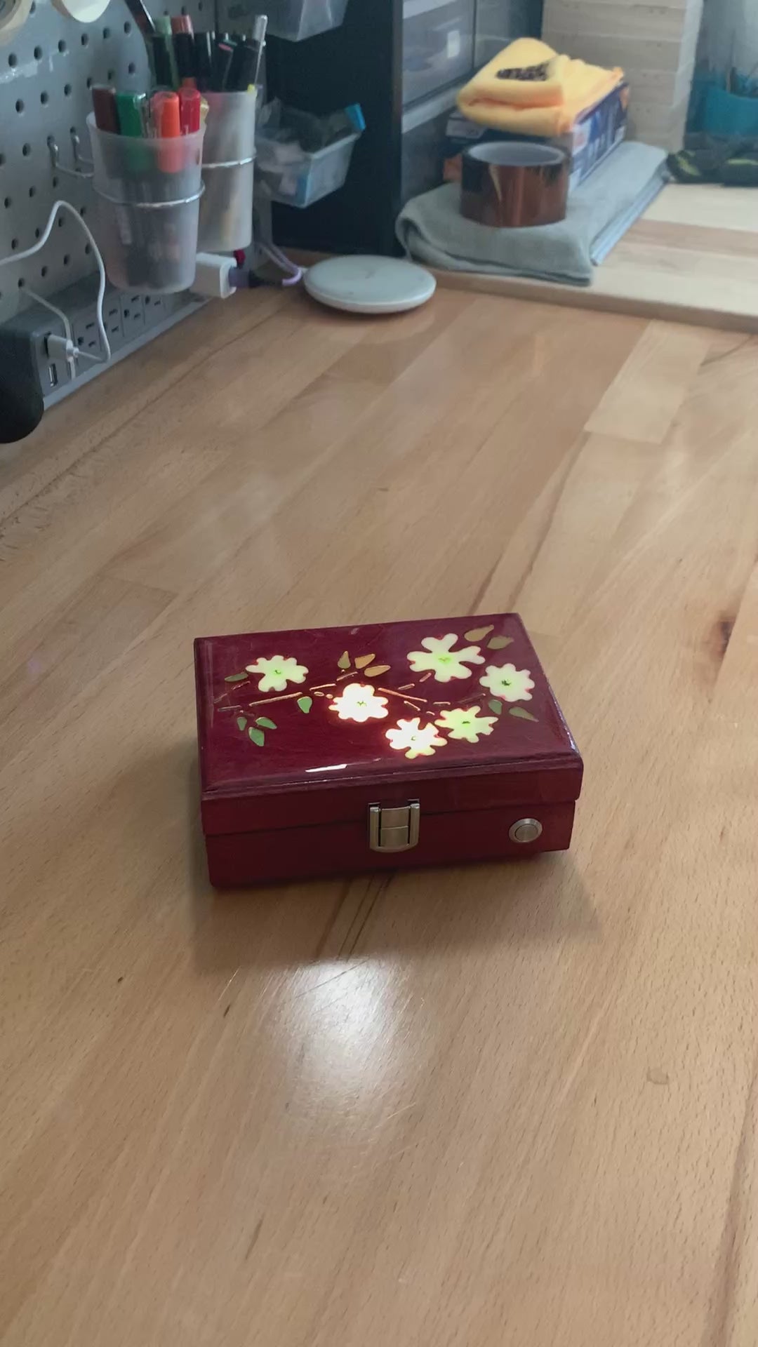 I hand cut each design into these wooden boxes that I cut and assemble. I wanted to bring the designs to life with color and light, capturing the mood of each design in a new way. A small LED inside casts a soft glow, powered by two replaceable AAA batteries that lasts approximately 50 hours of continuous use.