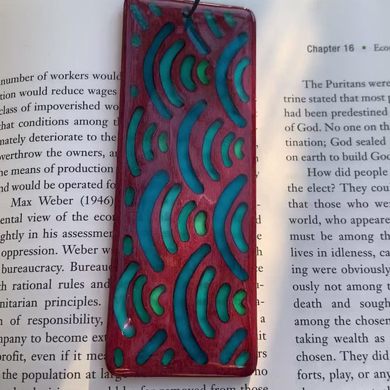 I cut the bookmarks from basswood sheets and stain them in different wood tones for a variety of color and grain highlights. I fill the designs with colorful UV resin, then give them a final clear coat of resin so they're extra sleek and robust. They have a simple blue hemp string tassel, leaving you with the option of adding any tassel if you would like.