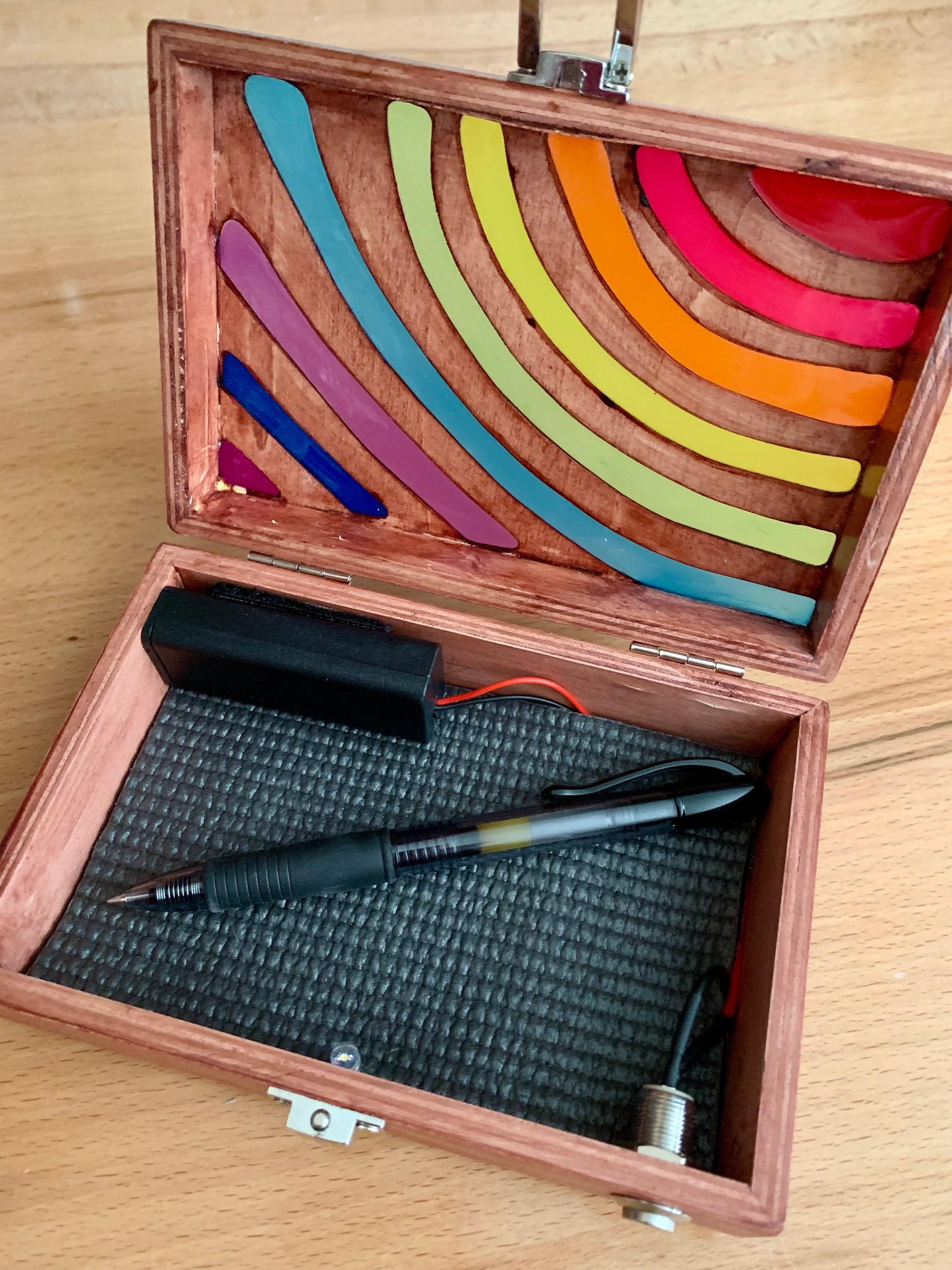 I cut each piece of the box from basswood with a table saw, then I hand cut each design into the lids using the same sunrise and sunset themes from my bookmarks. I wanted to bring the scenes to life with color and light, capturing the mood of each design in a new way. A small LED inside casts a soft glow, powered by two replaceable AAA batteries that lasts approximately 50 hours of continuous use.